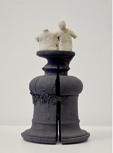 JULIETA BARDERI, Buenos Aires 1982. Me interesa desarrollar imágenes que propongan un extrañamiento frente a la figuración y al tiempo, indagando en las representaciones del pasado (la escultura clásica y sus ruinas, las ilustraciones medievales, la ornamentación y la funcionalidad de los muebles, las pinturas paleocristianas, sus pinceladas entrecortadas, y la sensación de la materia arrastrada contra la piedra) como preguntándome sobre las representaciones del presente. Mi producción general abarca pinturas, dibujos y esculturas, en los que abundan las figuras humanas —aparecidas más como despojos de sí mismas— en interrelación decadente con el acervo inanimado de la civilización. Me interesa la historia como no estática ni definitiva, como fuente y material disponible al alcance de uno para la producción contemporánea. Pensar en el tiempo como un cuerpo que se modela incesantemente sobre sus propias huellas.