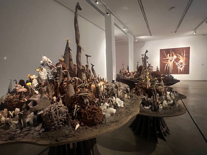 Se caracteriza por la diversidad de recursos y operaciones artísticas como escultura, instalación, pintura, cerámica y papel calado. Que giran en torno a relecturas contemporáneas del paisaje y las posibilidades de uso que me ofrecen los materiales obtenidos del propio sitio.