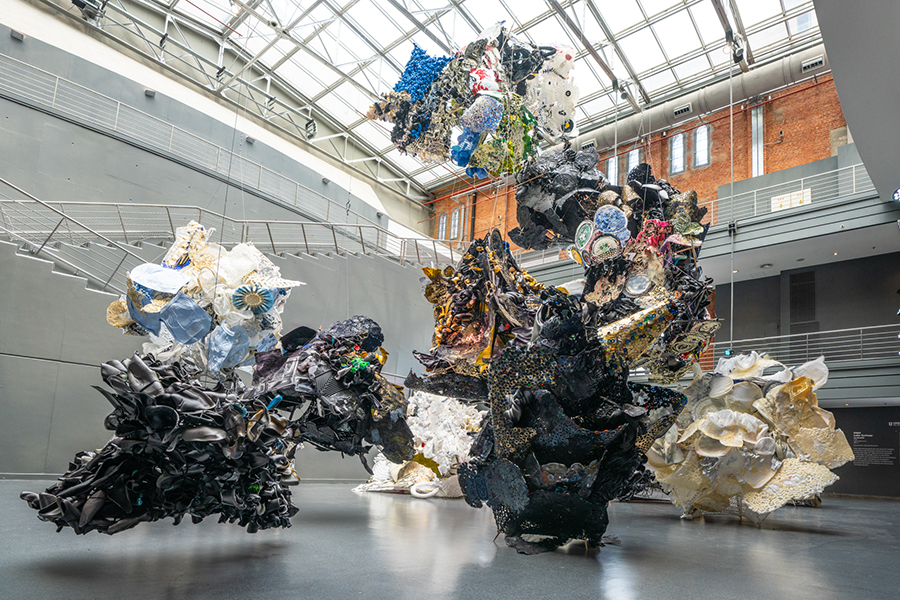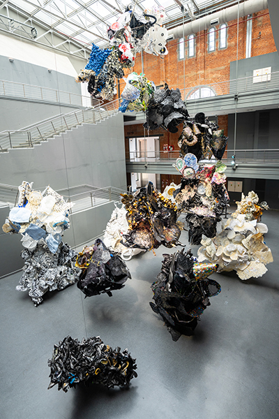 Instalación de sitio específico realizada especialmente para la Usina del Arte que reúne un conjunto de volúmenes realizados con materiales reciclados plásticos y textiles. Una gran membrana elaborada a partir de residuos urbanos tales como plásticos, textiles, palos y hierros se funden en las manos de estos artistas expertos en la materia para transformarla y crear una piel monumental, una feroz acumulación que nos invita a pensar en el devenir del ser.